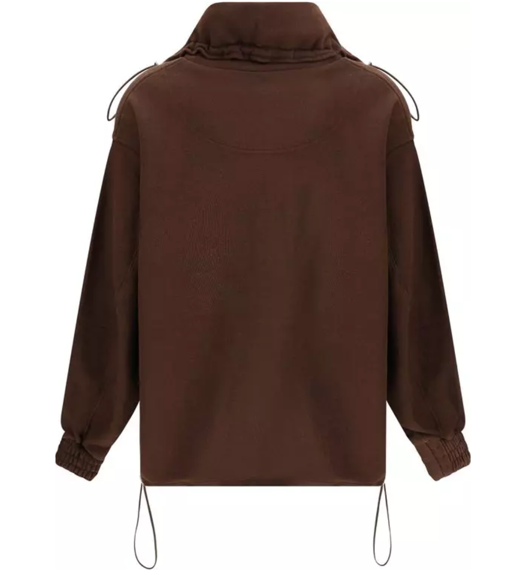 Cotton Sweatshirt by The Attico features a high-neck design with an adjustable drawstring for a customized fit. It features a half-bust zipper at the front, elastic cuffs and an adjustable inner drawstring hem. The front zippered pocket combines practicality and style, while the iconic contrasting monogram on the front adds a distinctive touch. The plush interior provides comfort and warmth ideal for cooler days.